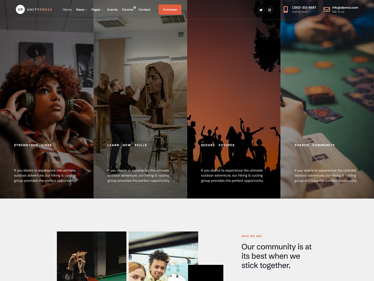 UnityPress theme brings modular flexibility. With pre-made blocks can be layout created fast and easily.